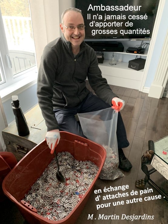 L’organisatrice Johanne Marcotte tient à remercier la participation de l’ambassadrice jeunesse Sarah-Mai Landry qui depuis 2019 ne cesse de demander aux professeurs et tous ceux de sa famille d’amasser des goupilles, sans oublier M. Martin Desjardins, ambassadeur qui lui aussi n’a cessé d’apporter de très généreuses quantités à chacune de ses présences au mouvement. Un remerciement très spécial à Mme Estelle Dionne, ambassadrice, pour son apport important à la campagne 2020-2021.