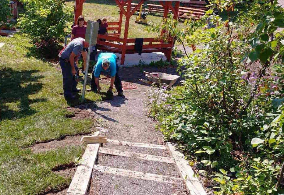 Plantation de vivaces colorées, pose de gazon, réaménagement des airs de repos, finalisation de l’installation du nouveau terrain de pétanque et construction d’un escalier menant au belvédère sont quelques-unes des réalisations de cette journée de corvée.