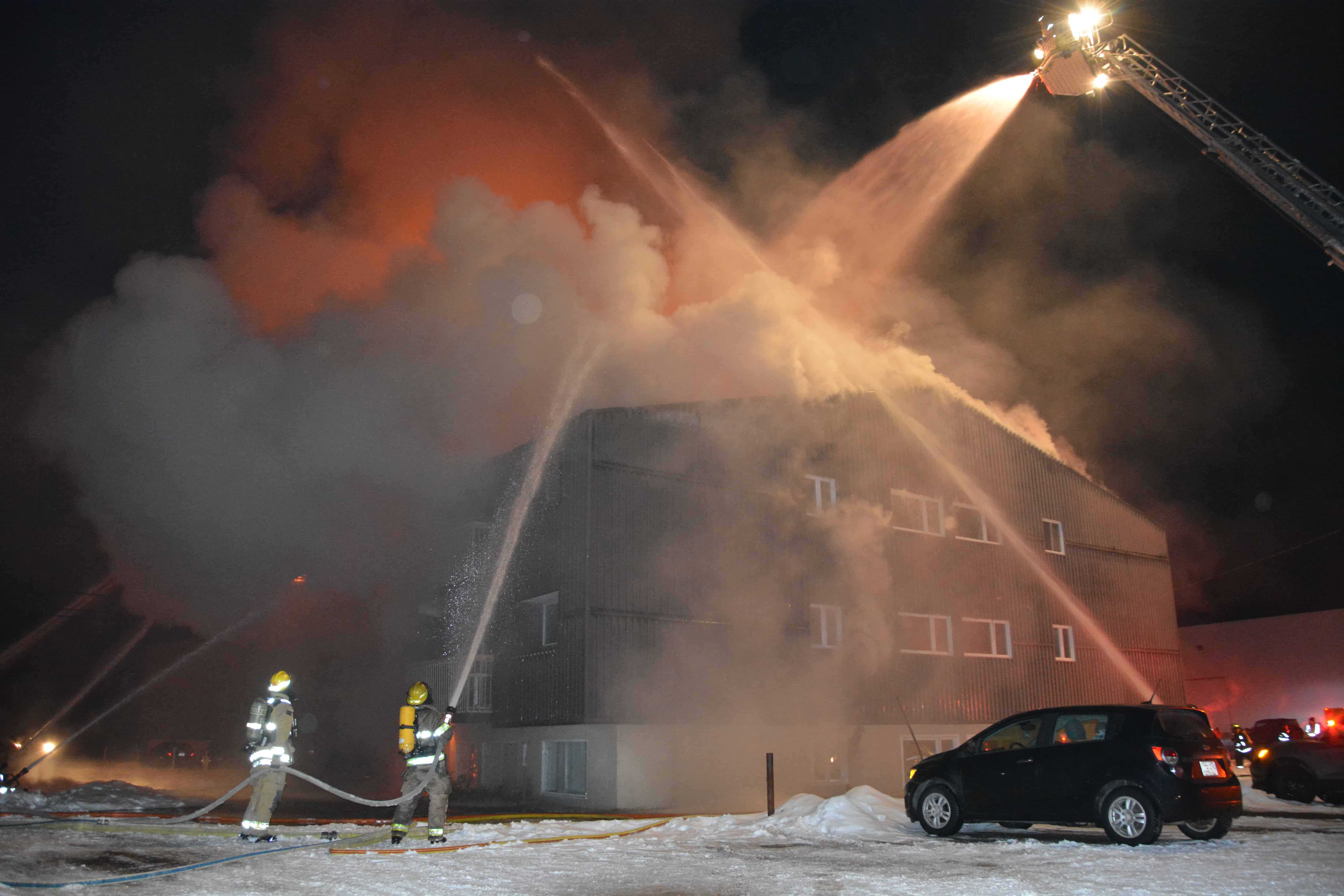 Au total, l’intervention a nécessité un bon 2 h de combat intense de la part des pompiers. Au lendemain du feu, Stéphane Dubé faisait état de deux d’entre eux qui ont été légèrement brûlés, deux autres avec des maux de dos suite à des chutes et un autre avec un pouce foulé.