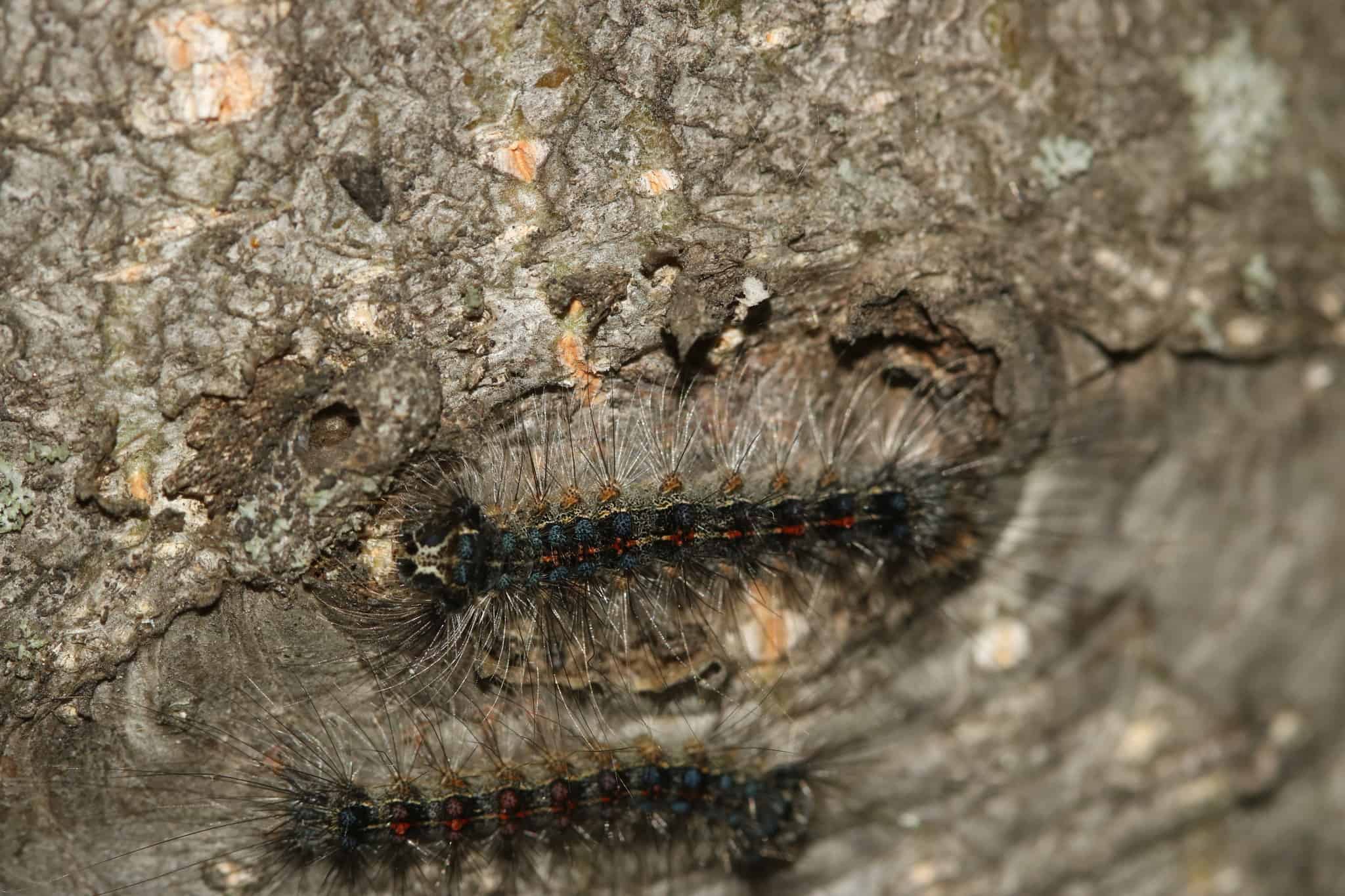 1 & 2 — Chenilles spongieuses adultes. Photo : André-Philippe Drapeau Picard.