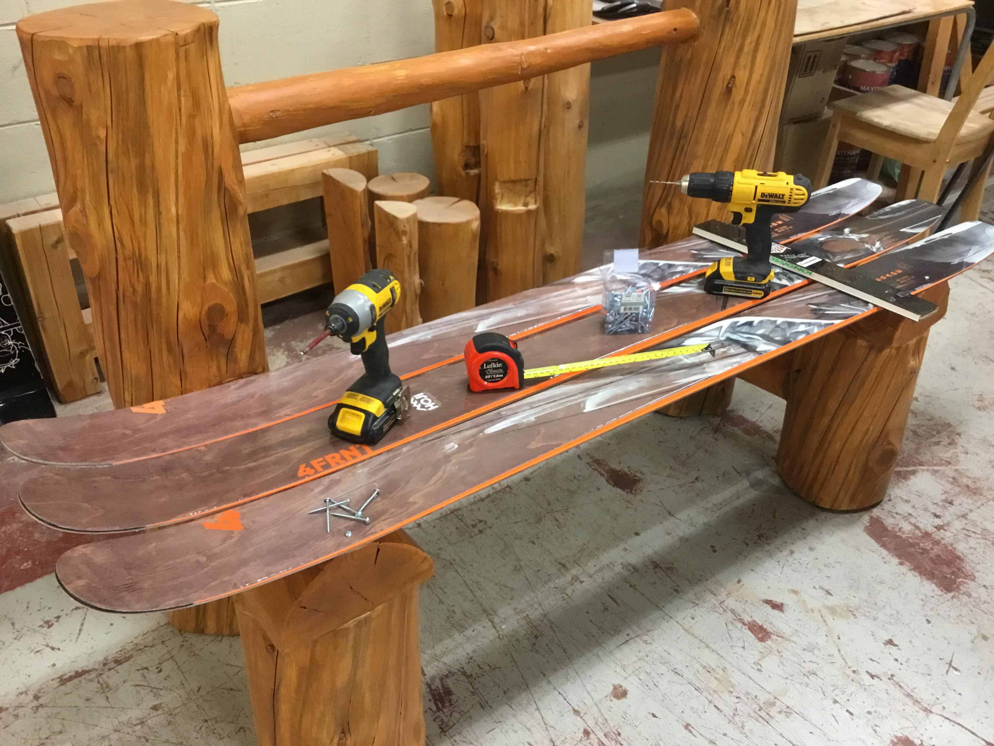 À la recherche de skis particuliers à réutiliser pour réaliser ce projet, François Boucher était à court d’idées quand il a été contacté par Jean Auclair, le père de Jean-Philippe Auclair, à qui Skisrécup avait offert un banc deux ans auparavant. « Il venait de refaire du ménage dans les affaires de son fils et il avait trouvé de nouveaux skis qu’il tenait à nous donner, car il croit beaucoup en notre entreprise-école et qu’il estimait que ça nous revenait », ajoute François Boucher.