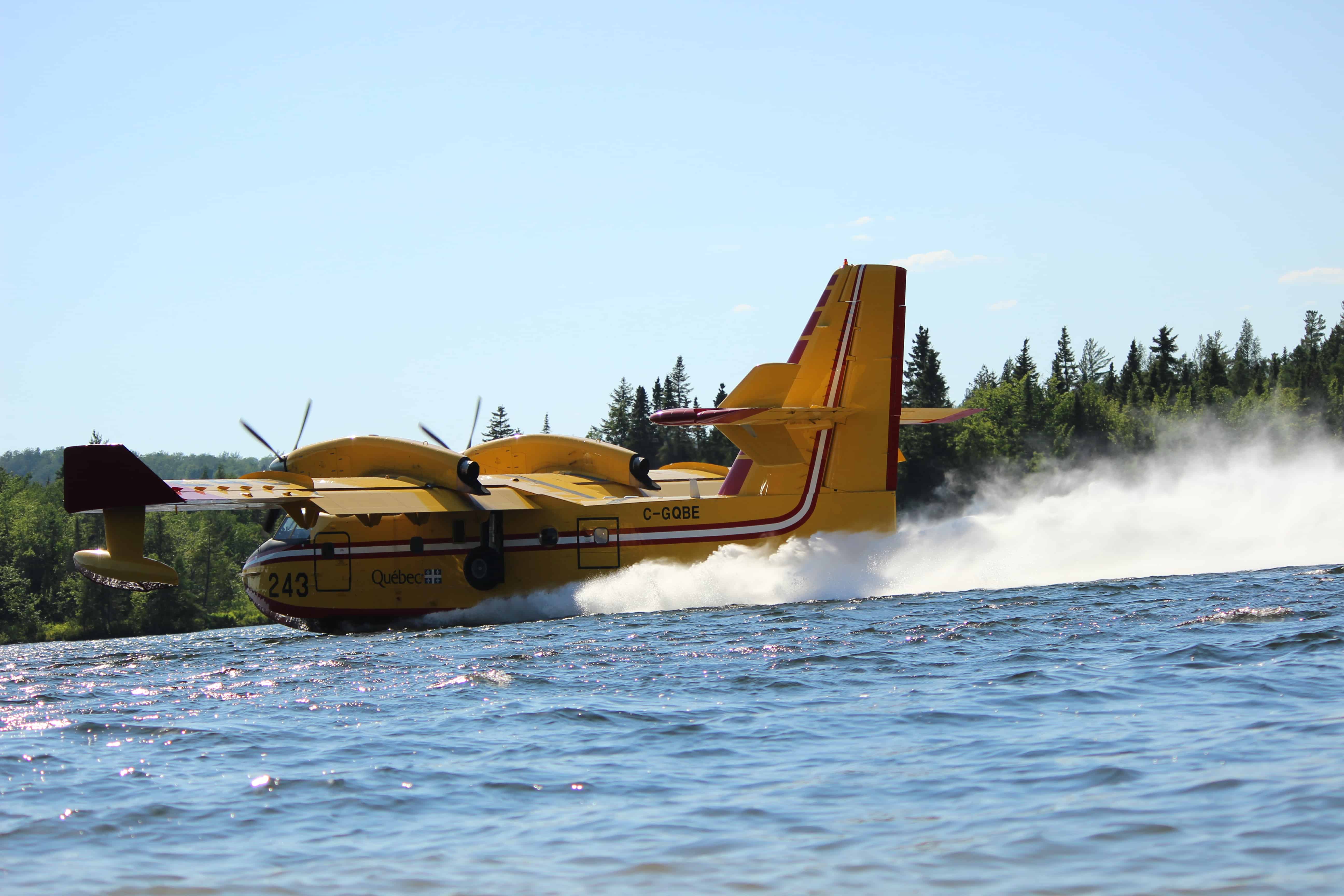 La SOPFEU et ses avions-citernes ont été appelés en renfort. Ils se ravitaillent en eau au lac Saint-Pierre de Mont-Carmel, situé non loin.