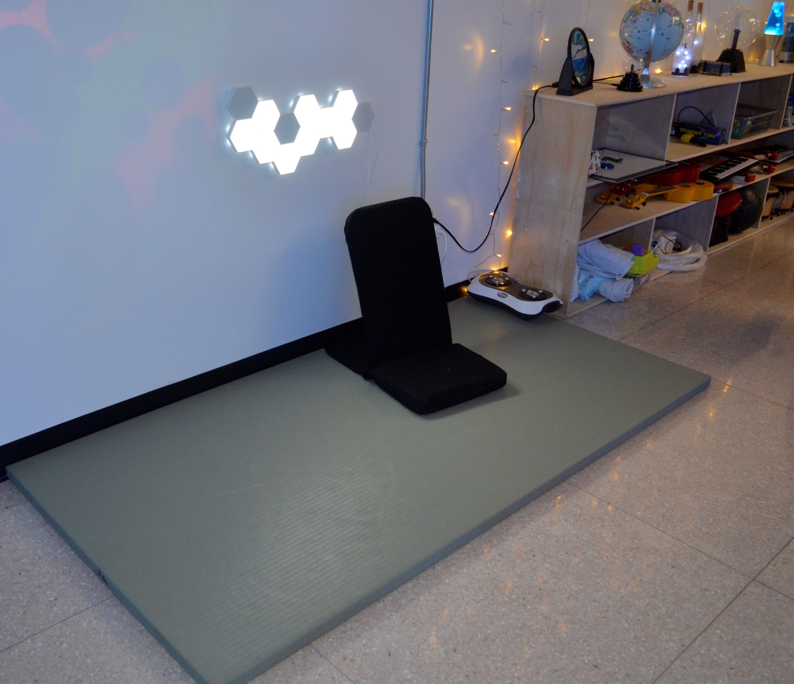 L’espace a été présenté aux membres du personnel et parents le jeudi 8 décembre dernier. On y retrouve différents éléments qui font appel à plusieurs sens : piscine à balles, tapis de sol, miroirs, panneaux muraux, coussins vibrants, fibre optique, balançoire, hamac, diffuseur d’huile essentielle, lève-personne, etc.